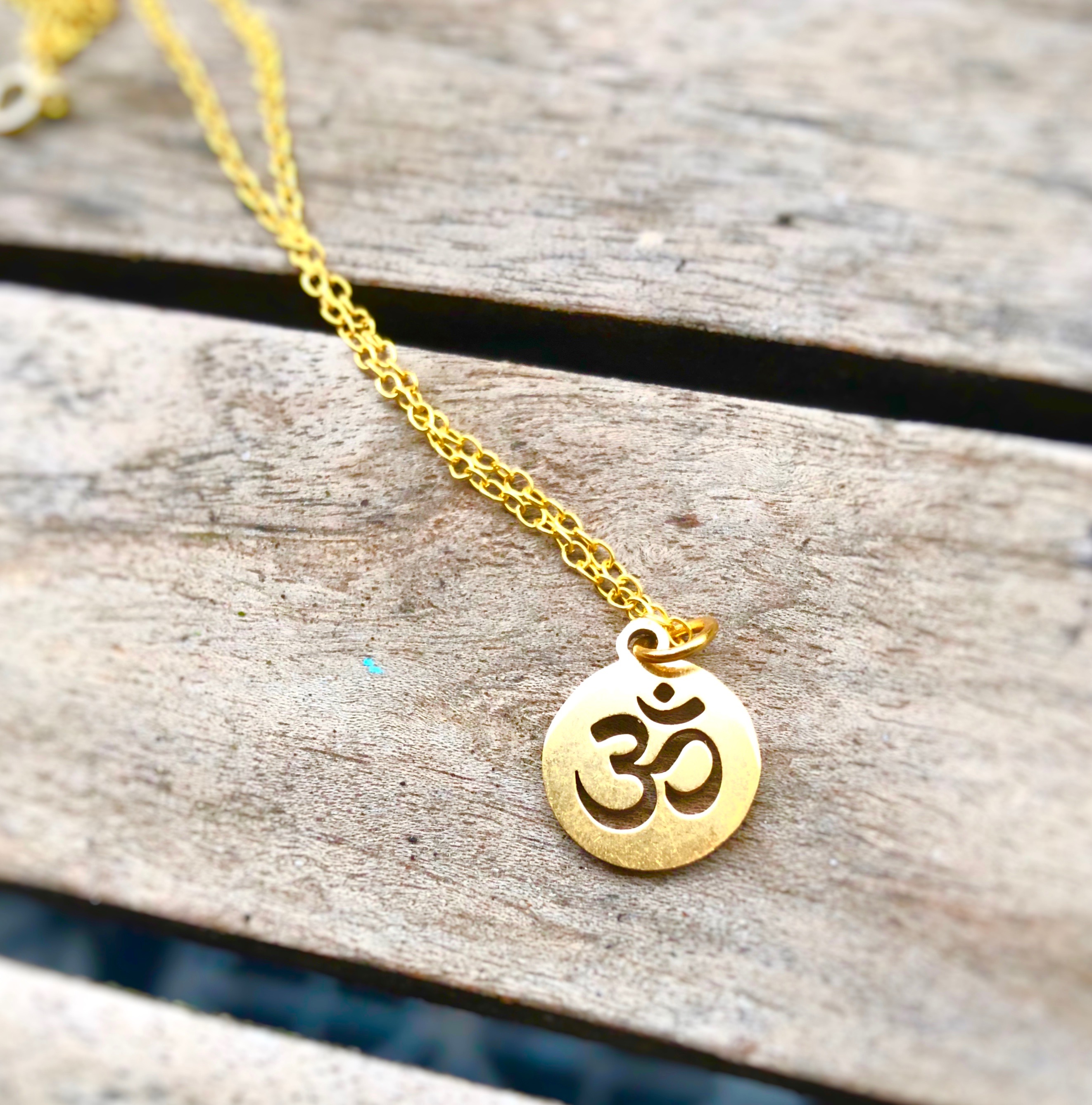 AUM halskæde fra Moving Spirit – Soul JewelryAum (Ohm) er Universets lyd og symbolet minder dig om, at du er forbundet med det uendelige.En fint og enkelt smykke inkl.kæde.Halskæden måler 45 cm og er fremstillet i forgyldt sølv (925 sterling sølv, belagt (Læs mere)