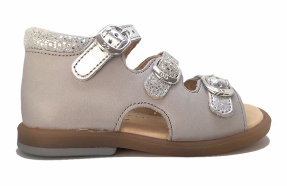 Denne fine pigesandal i pearl gråt skind og 3 sølvremme, har god reguleringsmulighed – og det er særligt godt, hvis foden er smal. Sandalen er både sød og anvendelig om sommeren – eller som indesko i vinterhalvåret. En sød sandal, der sidder godt på foden (Læs mere)