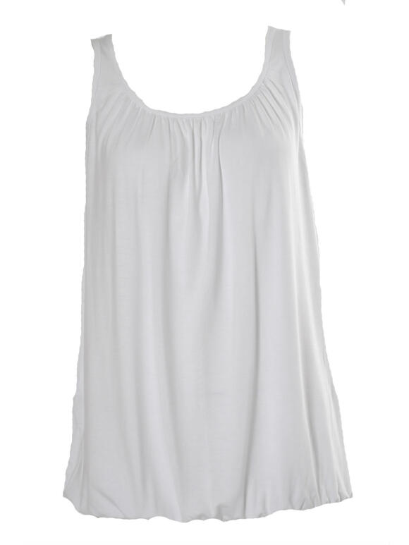 Hvid Ofelia Zoey top med bred strop, elastikkant forneden og god rummelig facon. Toppen er en fantastisk delle skjuler og er god som selvstændig top, men også under en jakke eller en trøje. 95 % viscose og 5 % elastan. Vaskes ved 30 grader. Max krympning (Læs mere)