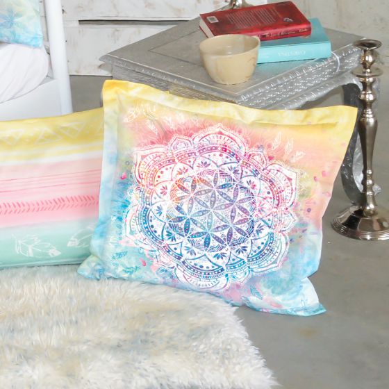 Pude i fantastisk pastel farvespil BEAUTYÂ DREAM fra The Spirit of OM.Mandala giver ro og harmoni og de skønne farvekombinationer minder én om glæden ved livet og at det er tilladt at drømme.Økologisk bomuld &økologisk farvet. GOTS certificeret. Puden eg (Læs mere)
