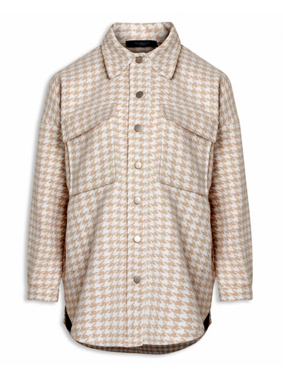 Melia skjorte jakke i fed kraftig vævet kvalitet i harlekintern i offwhite og sand. Skjorte krave, lange ærmer med manchet og trykknap lukning. Trykknapper ned foran. To brystlommer med klap og lommer i sidesømmen. Let oversize facon og en lækker overgang (Læs mere)